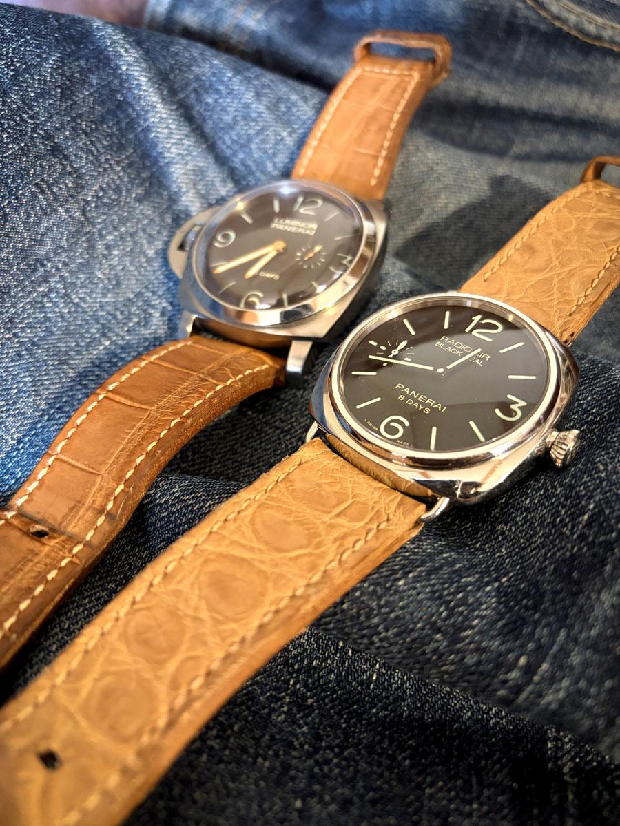 このルミノールとラジオミールでは色味が違います・・・・・というのもルミノールの方は1番最初に作ったサンプルなので試用期間が長いのと経年変化をさせる為にオイルも入れましたし、水にもさらしています。