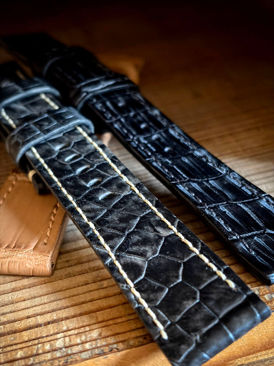 ラグ幅24mmは、ヌメクロコと墨染めクロコ。