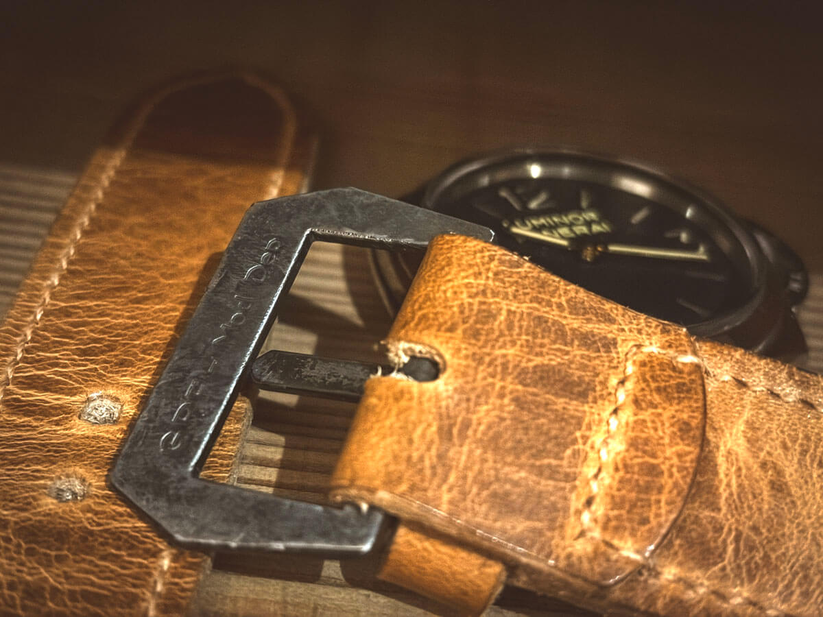 ダマスカス鋼のバックルは雰囲気が非常に良いですよ。