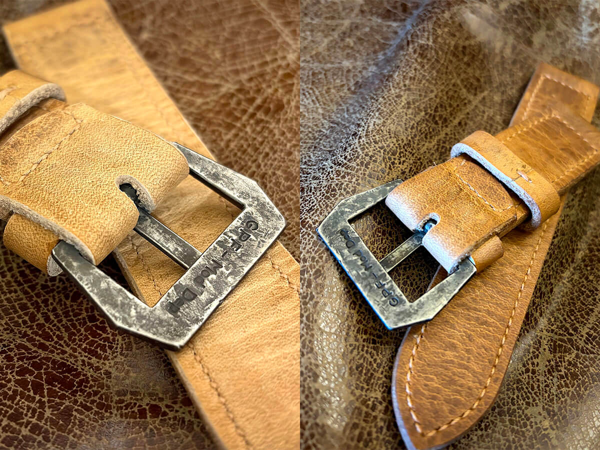 先日手に入れたヴィンテージのGPFバックルに合わせてストラップもヴィンテージの様な雰囲気にしました。
