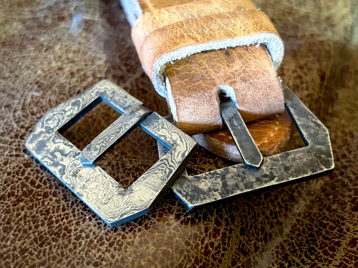 このバックルは先日仕入れたダマスカス鋼が雰囲気似ているので長目で作ろうと思います。
