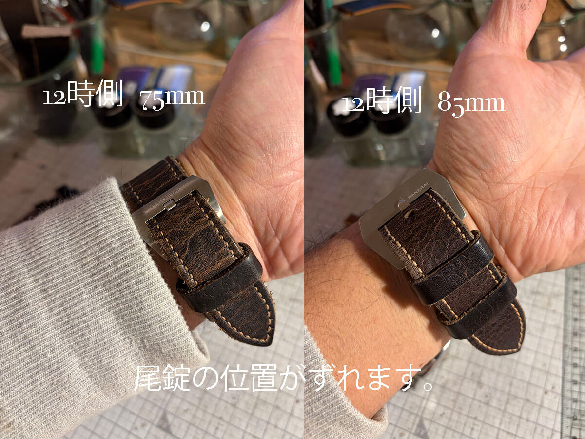 12時側の長さが変わるとこんな感じでバックルの位置がずれます↓↓
