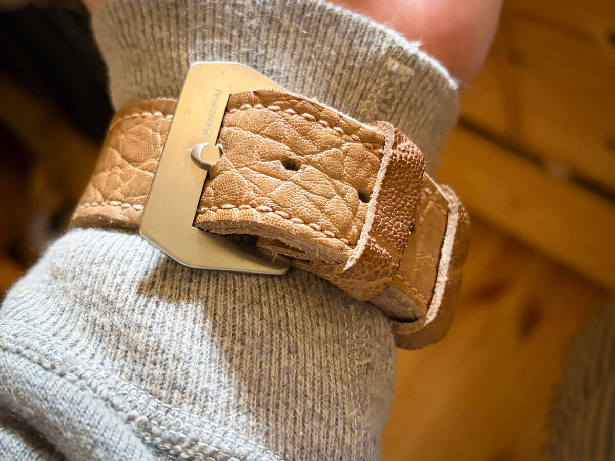 ヴィンテージパネライはウェットスーツの上に時計をする為に長いストラップが標準で子穴の間隔も広いのが特徴です。
