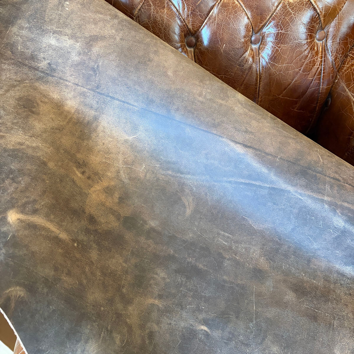 これはコンビ鞣しのレザーで色が独特です。
