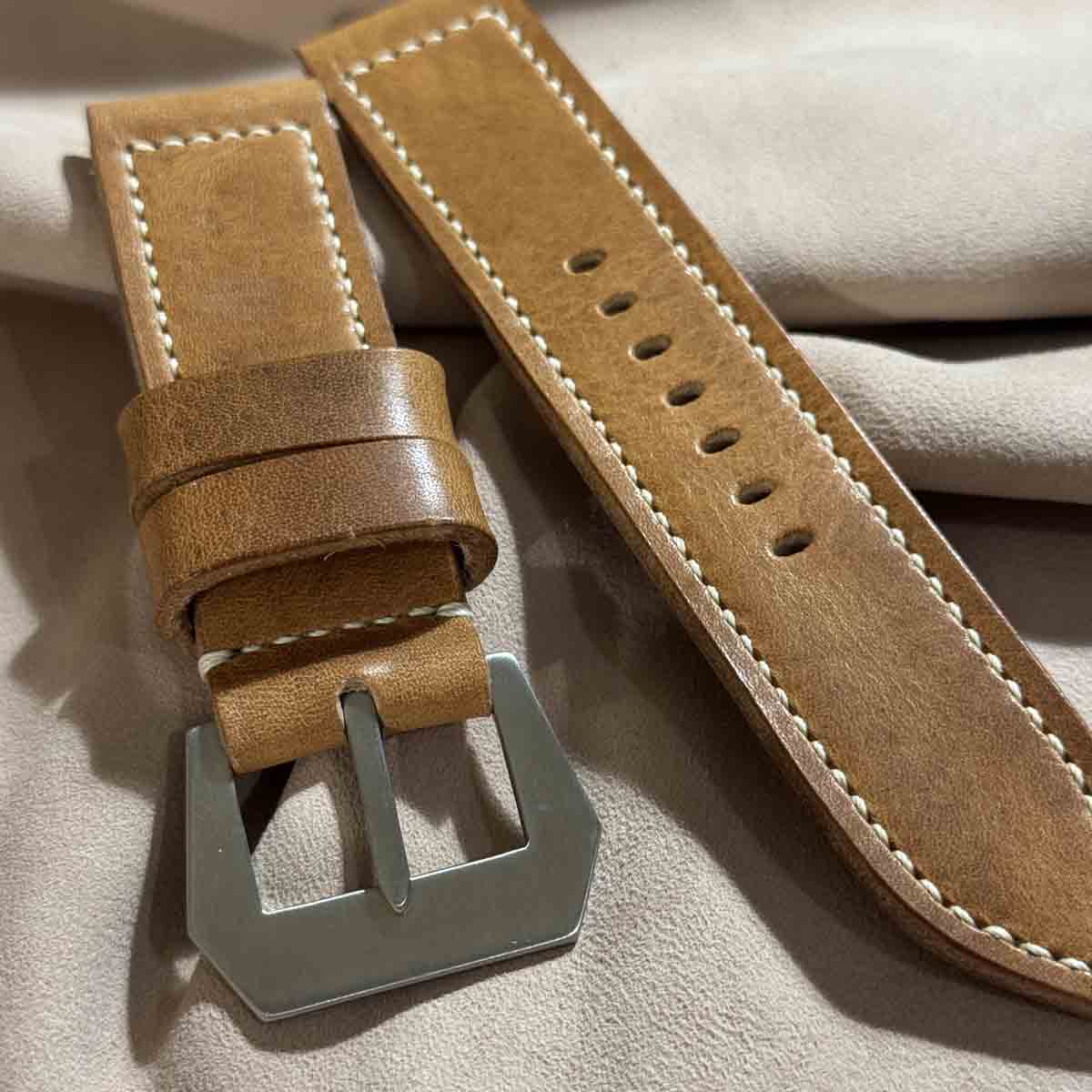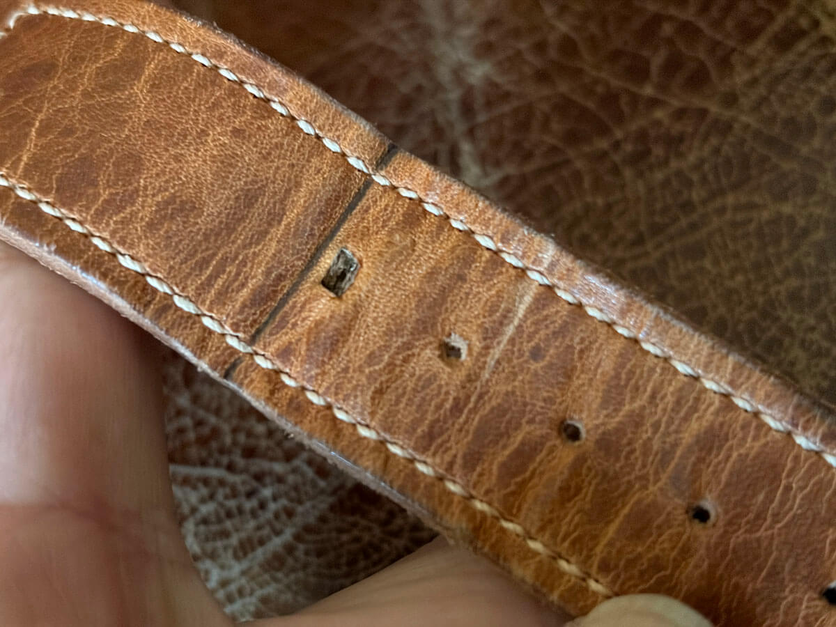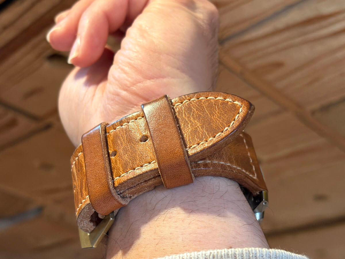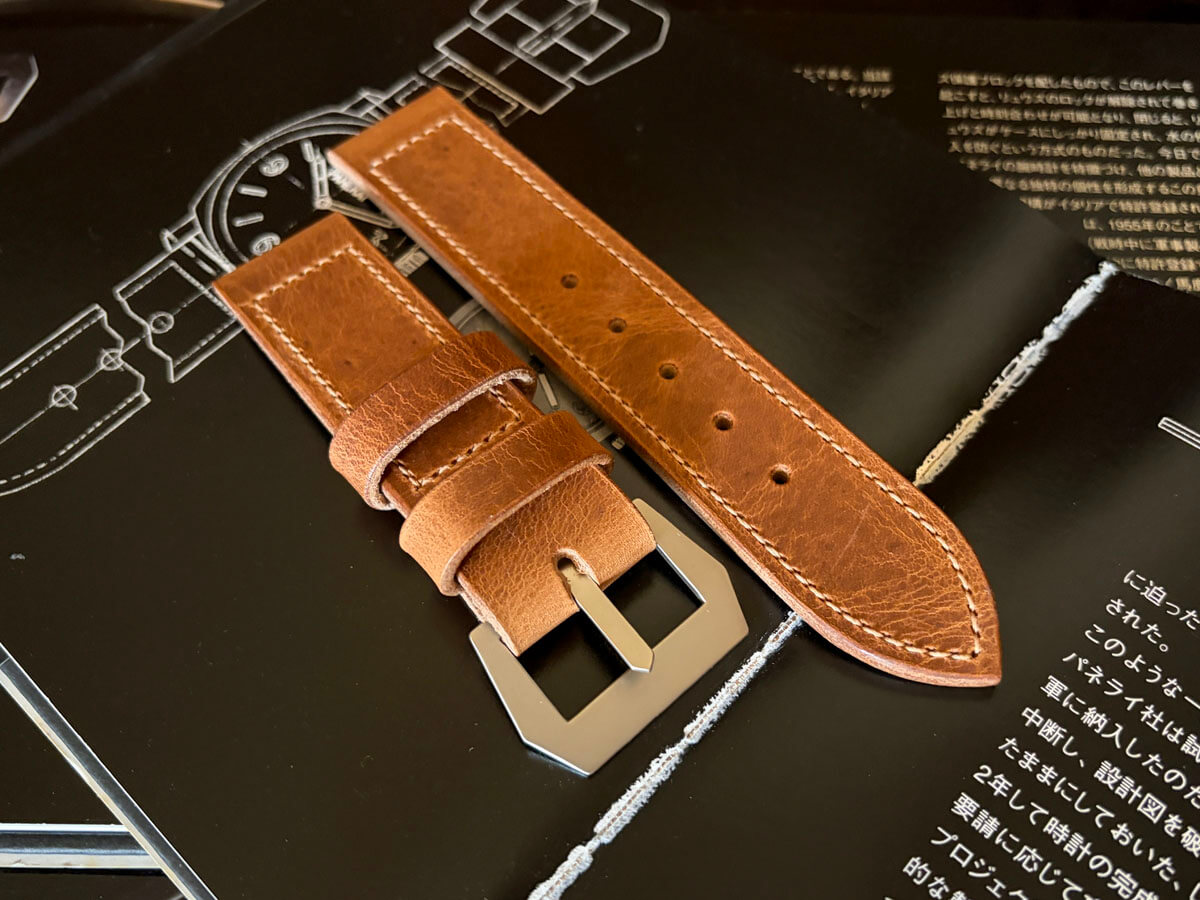 ヴィンテージパネライは軍用時計なので用途(ミッション)に合わせた、長目で厚いストラップです。